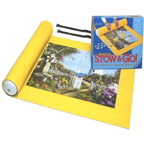 Roll up and transport your jigsaw puzzle in progress with the innovative Puzzle Stow and Go. Just begin your puzzle on the bright felt mat with special non-skid backing for easy sorting and contrast and then when you want to take a break, roll the mat up with the help of the inflatable tube and use the two securing elastic bands to keep everything in place. Mat is sized to fit up to a 1500-piece puzzle. Measures approximately 46" x 26".Trust me when I say this is not worth a dollar, nevermind ten. I wish I had read the review before buying this piece of garbage. It consists of a square piece of felt that will not lie flat (kind of necessary when doing a puzzle), a blow up tube that is sure to pop and 2 ties that a bound to get lost. What a waste of money and a disappointment because it sounded like a great idea. Completely flawed. Someone else should create a better design...