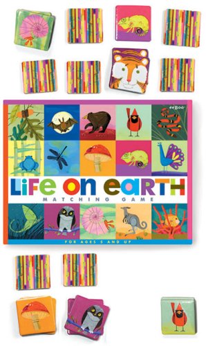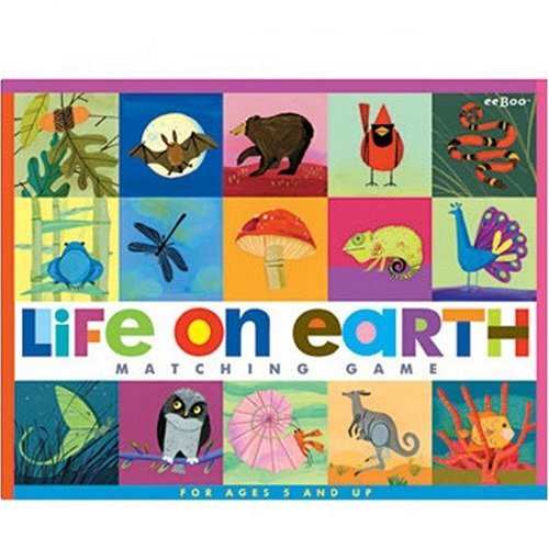 GENERAL FEATURES: Life on Earth by eeBoo is a matching game for two or more young players. Children try and match 24 different images of earth based plants, insects and animals, all beautifully illustrated. The game sharpens recognition and memory skills. Winner of Oppenheim Best Toy Award. For ages five and up.
