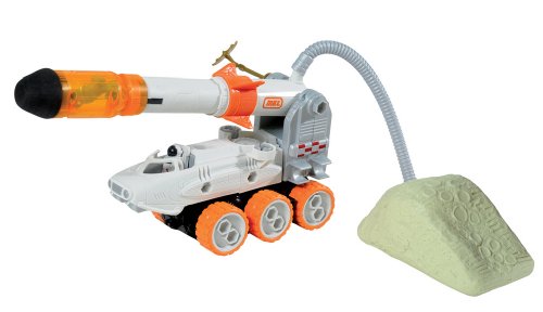 The Galactic Rover is exactly the rugged vehicle you need to conquer extraterrestrial terrain! It starts as one huge ship and separates into lots of different fun and exciting adventure vehicles you can combine any way you like. Send out the space pod and the ATV. Fuel up the rocket and launch it. Then take them apart and connect them all over again. A natural add-on to the Space Mission, the Galactic Rover is motorized, becomes multiple smaller vehicles and guarantees hours and hours of intergalactic fun. Requires four "AA" batteries, not included.